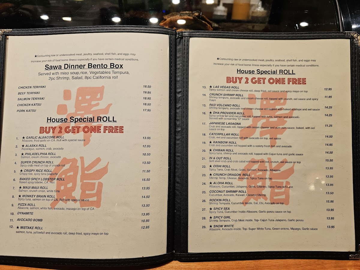 The cuisine at Sawa Sushi expertly captures the essence of traditional Japanese flavors while ensuring every dish is a feast for the senses. Indulge in their Sushi Combos, where the Matsu Combo (seven assorted sushi paired with an eight-piece California roll for just $19.95) offers a harmonious balance of textures and tastes. For those craving something a bit more extravagant, the Sawa Boat ($49.95) is a stunning selection that includes two house special rolls, a chef’s choice of nine pieces of sashimi, and eight pieces of nigiri, served beautifully with a cucumber salad and miso soup to round out the meal.